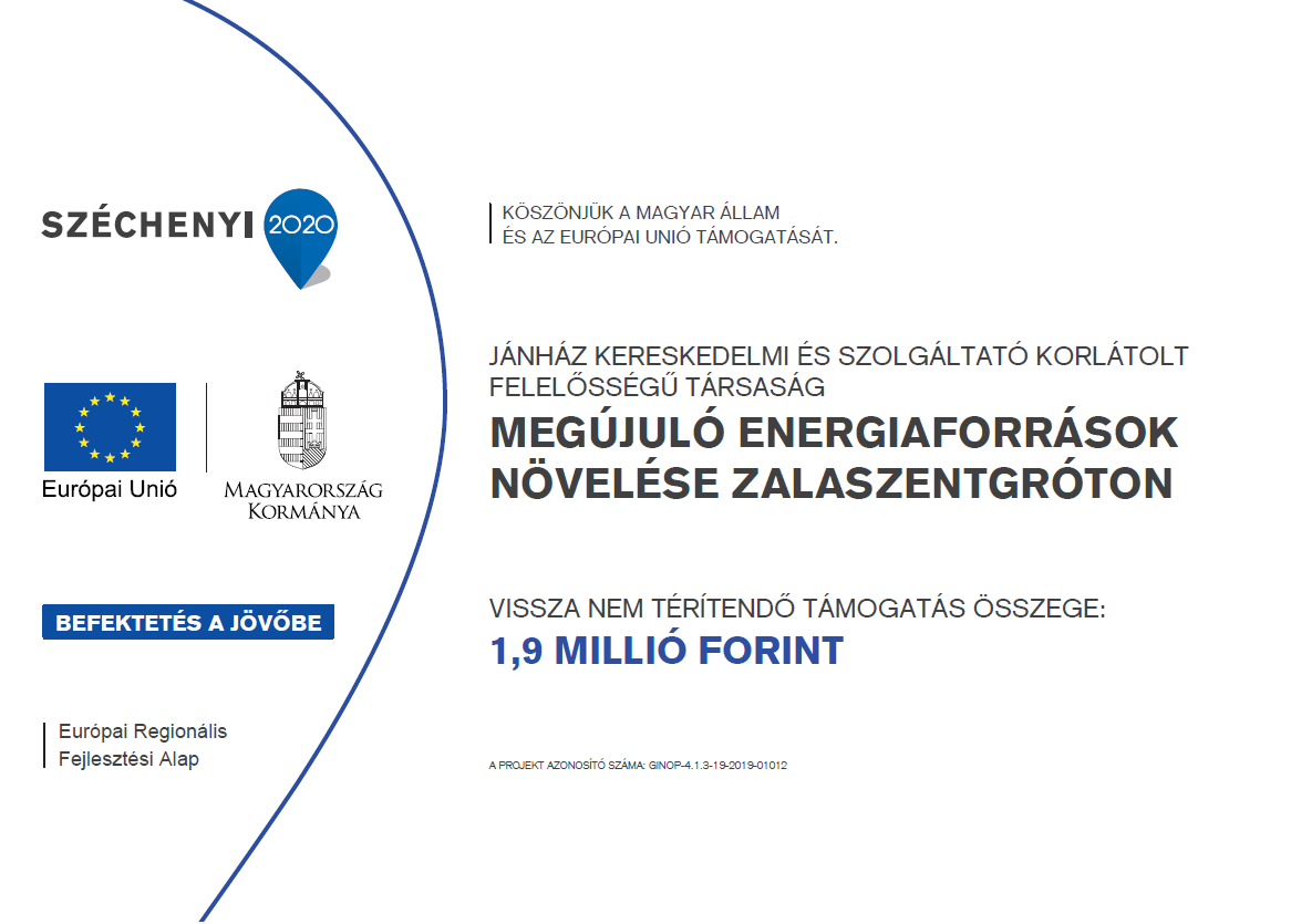 Kedvezményezett neve: JÁNHÁZ Kereskedelmi és Szolgáltató Korlátolt Felelősségű Társaság