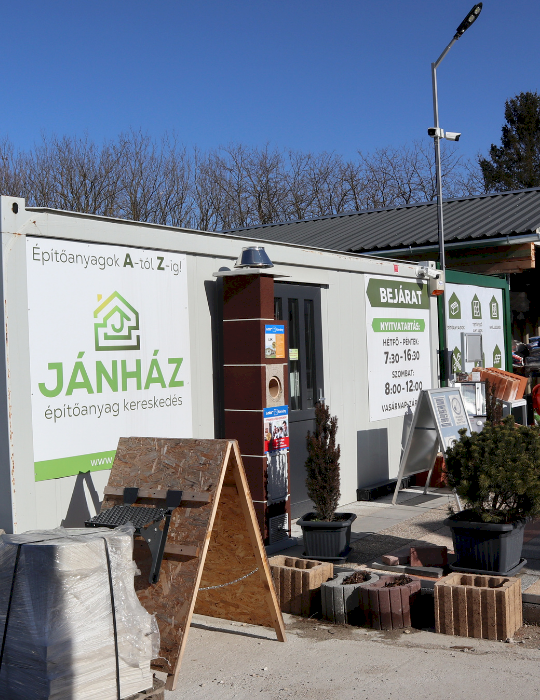 A Jánháznál kis- és nagykereskedelem is zajlik, ami lehetővé teszi, hogy nem csak a lakosságot, de a kivitelezőket is kitudjuk szolgálni. Mindezt magas színvonalú szakmai értelemmel és versenyképes piaci árakkal.